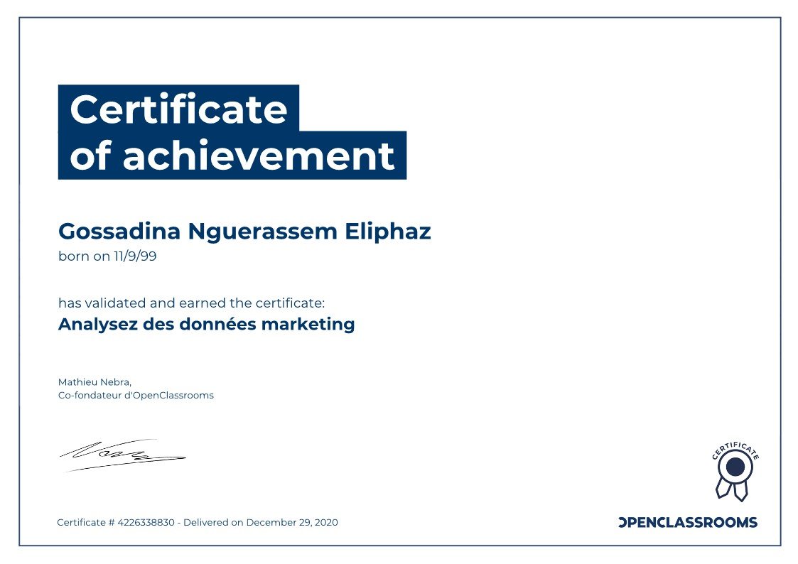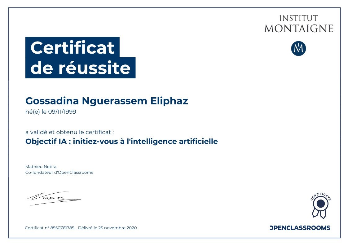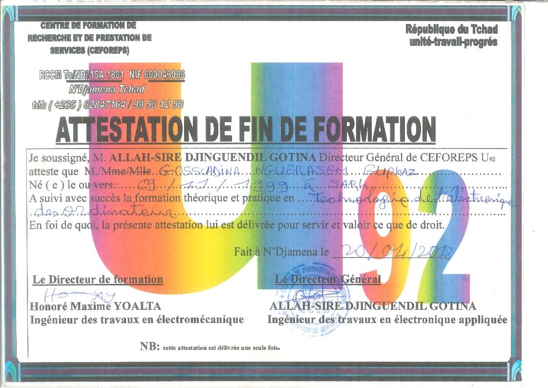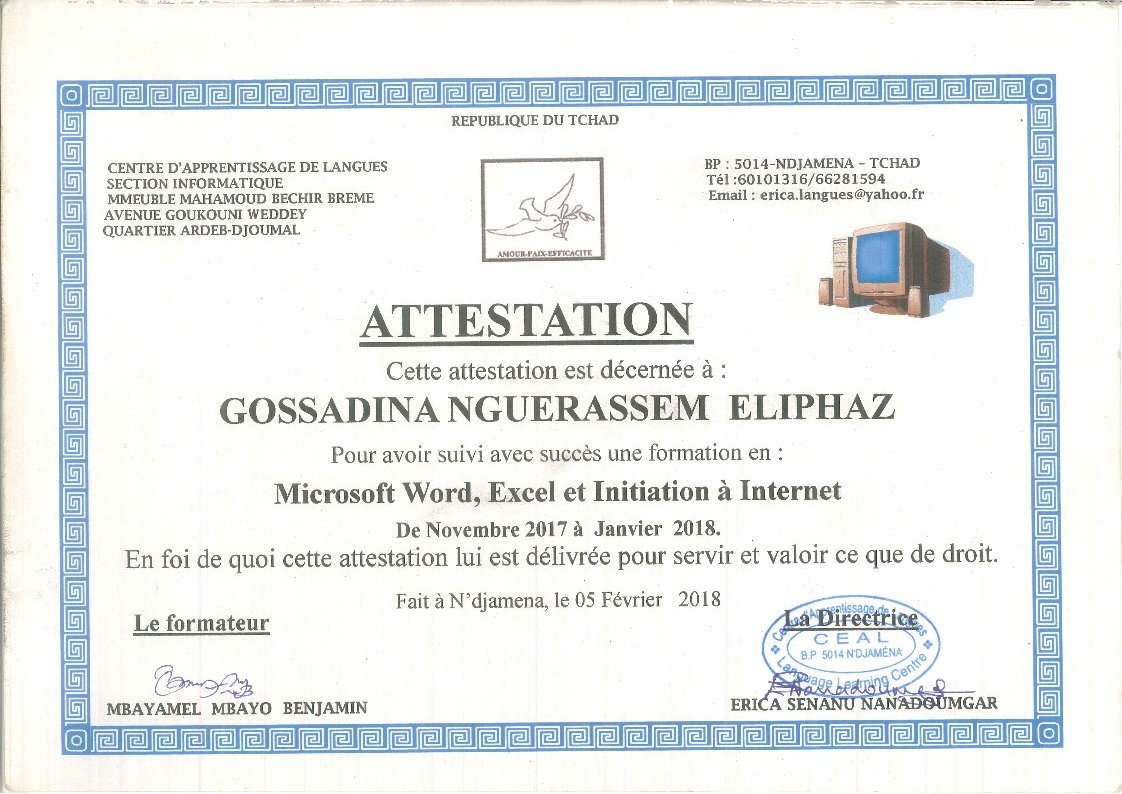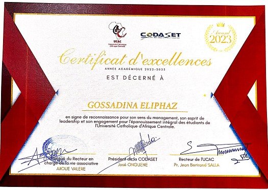 Je suis GOSSADINA NGUERASSEM Eliphaz, de nationalité tchadienne. Recemment diplômé en Ingénierie Informatique à l'Université Catholique d'Afrique Centrale (UCAC-ICAM).